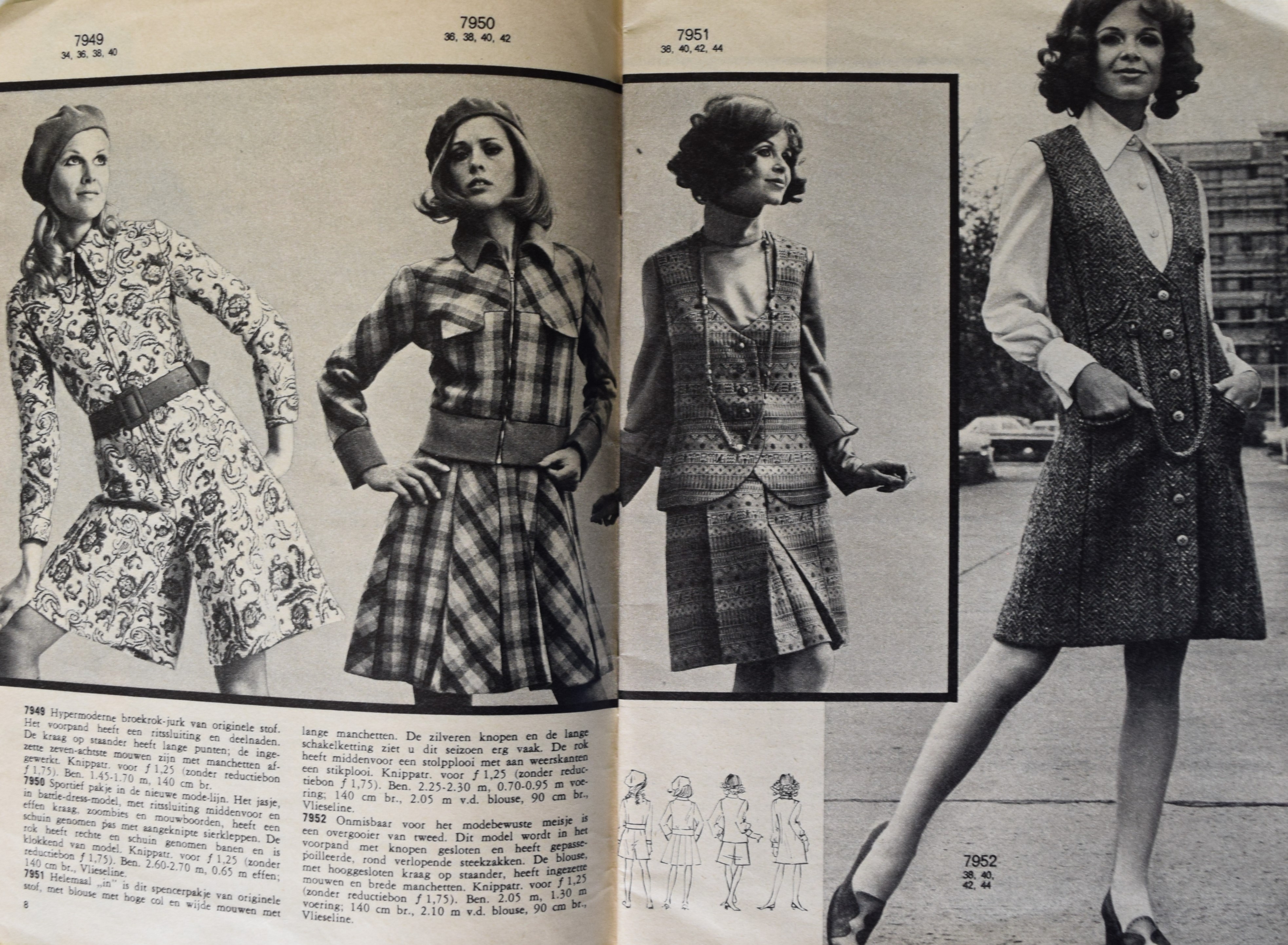 trousers and jacket 7966, trousers and jacket 7969, skirt and blouse 7968, dress 7969.